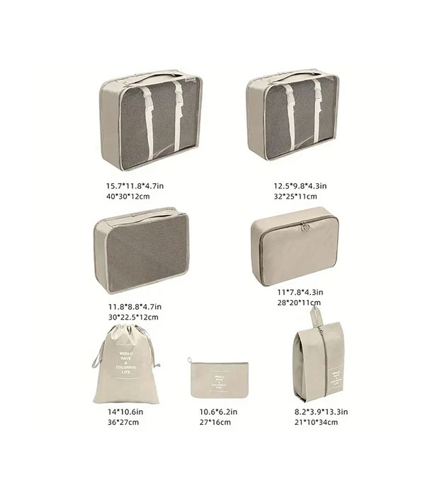 نظم دهنده ( ارگانایزر ) های ۷ تیکه از جنس برزنت نرم میباشند. برای نظم دادن به کمد لباس و همچنین گزینه ی مناسب برای چمدان شما هستند. به دلیل ضدآب بودن این محصول، شما میتوانید به زاحتی از آن برای لوازم شوینده هم استفاده کنید.